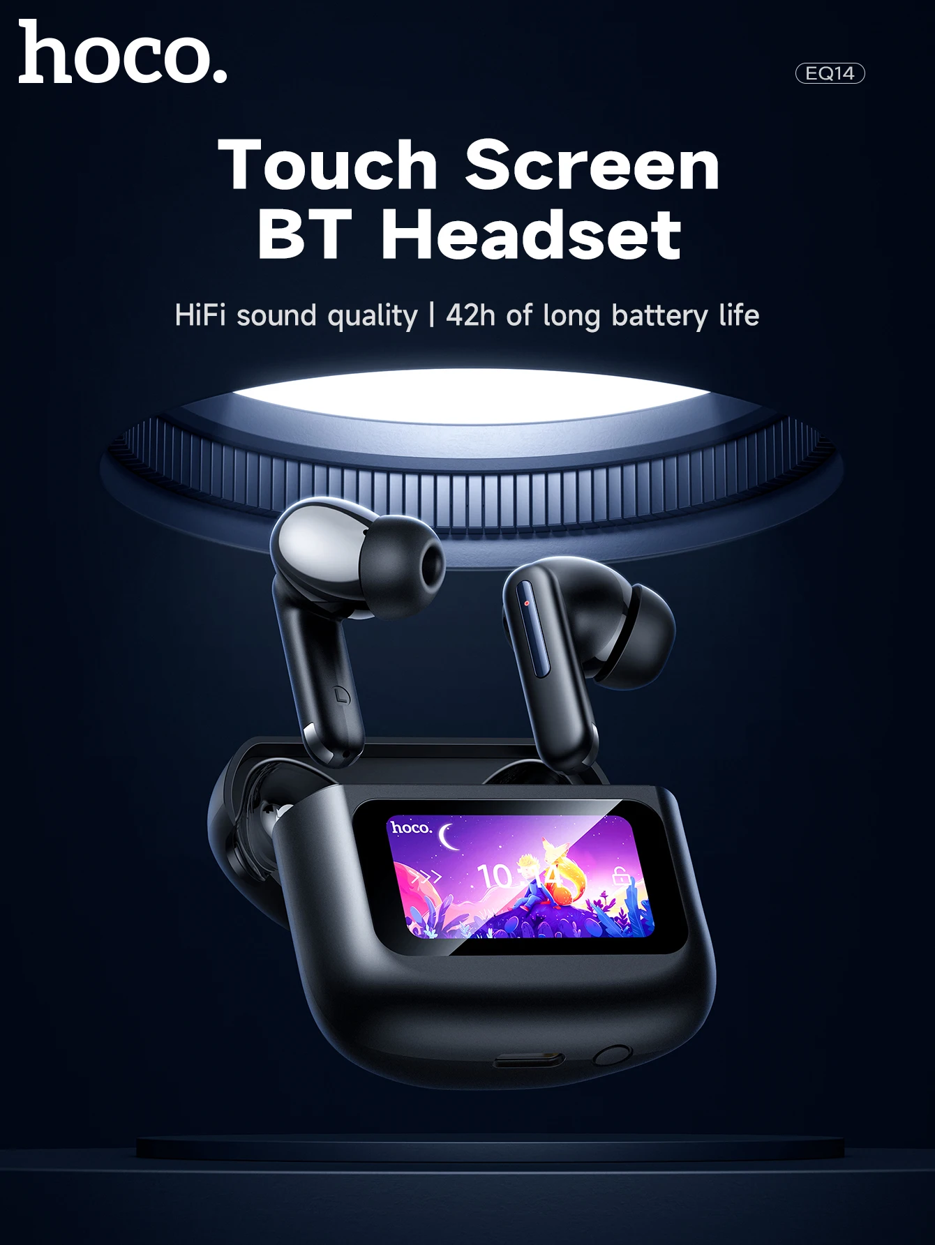 HOCO EQ14 Touch Screen ANC Earphone Bluetooth 5.3 Active Noise Cancellation Wireless Headphone Fast Charge Earbuds Low Latency